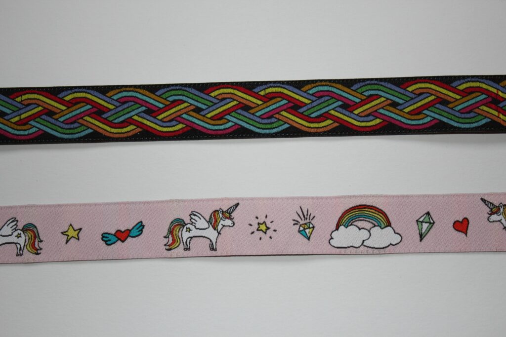 Die farbigen Gurtbänder sind für die Webbänder als Untergrund gedacht.