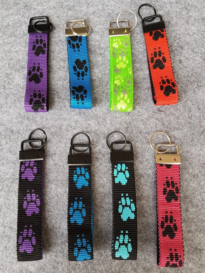 Die Schlüsselanhänger sind in verschiedenen Mustern und Farben möglich. Sie sind ca. 10cm lang und in den breiten 25/30mm erhältlich. Die Verschlüsse gibts in Silber, Schwarz und Regenbogenfarbe. Er ist als kleines Geschenk, Glücksbringer oder Tröster immer ein guter Begleiter.